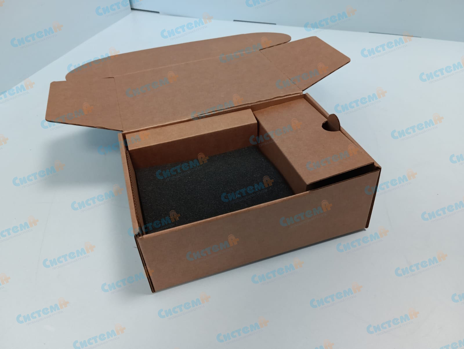 Для компании, которая изготавливает оборудование для связи и интернет-коммуникаций, мы изготовили партию комбинированной упаковки, состоящей из сочетания картонной коробки и вкладыша из черного пенополиуретана.